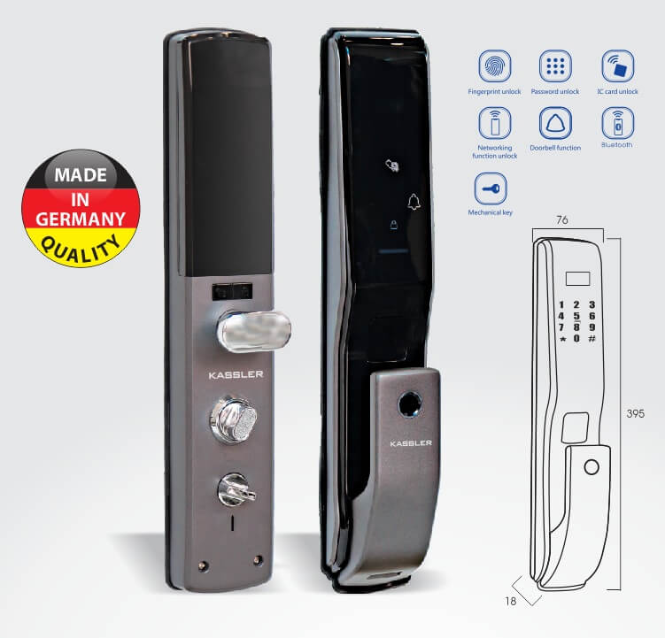 Các mẫu khóa điện tử Kassler được tích hợp đầy đủ phương thức mở hiện đại:- Vân tay: cảm biến sinh trắc học FPC (Thụy Điển) nhận diện chỉ trong 0.5 giây