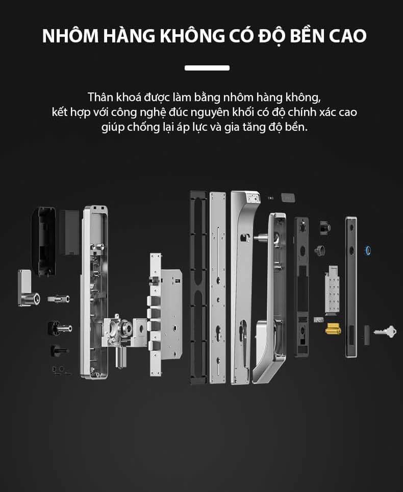 Khóa Laffer tiêu chuẩn gồm cảm biến xác thực, bộ xử lý và mô tơ kéo chốt mortise. Cảm biến điện dung cho tốc độ nhận diện vân tay nhanh; dữ liệu được so khớp cục bộ để mở chốt tức thời, không phụ thuộc Internet. Bộ nguồn tiết kiệm năng lượng kết hợp cơ chế tự động khóa khi khép cửa giúp hạn chế quên khóa. Trên ứng dụng, người quản trị có thể thêm người dùng, tạo mã theo lịch và xem nhật ký để kiểm soát an ninh ở mức chi tiết.