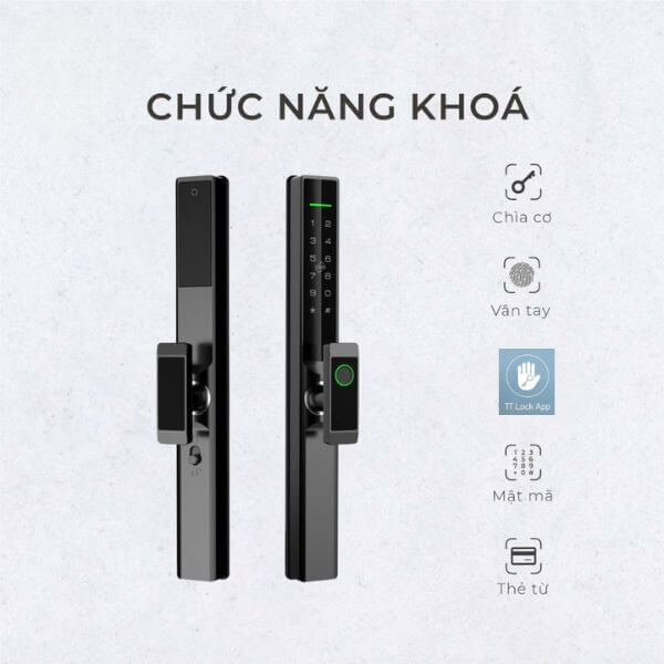 - Mở bằng vân tay, thẻ từ, mã số, chìa cơ, App TTLock