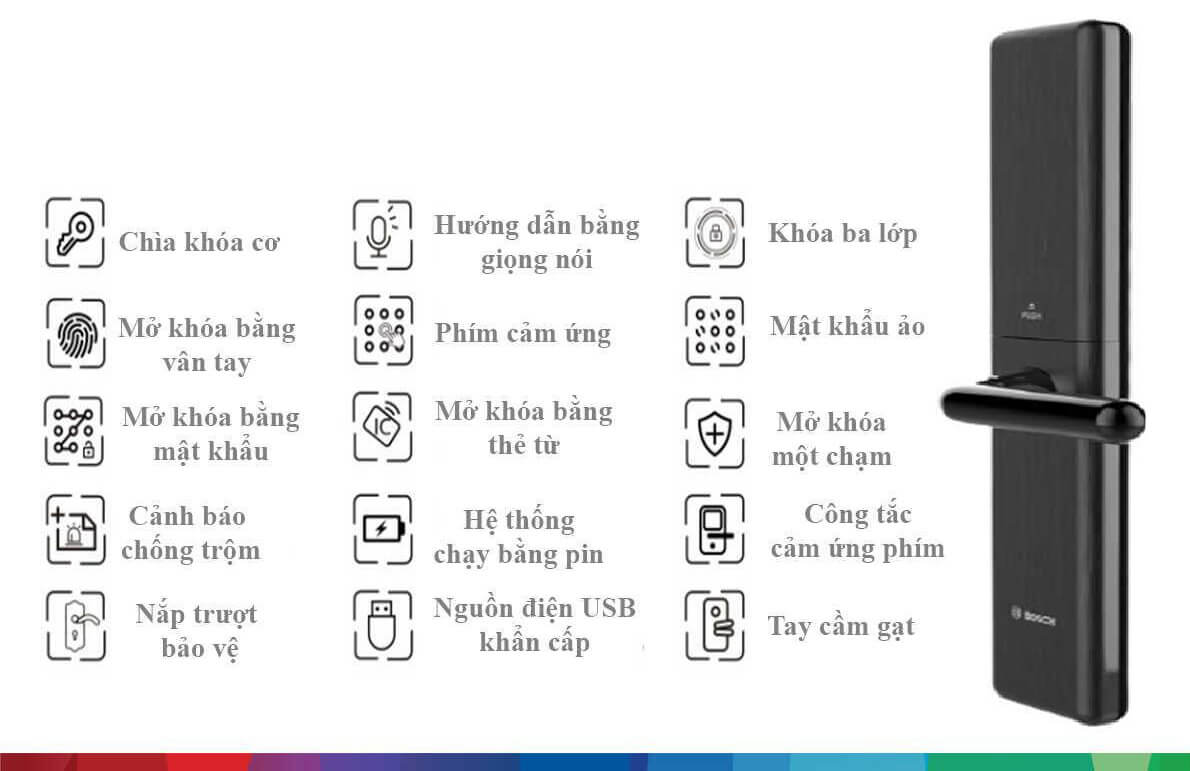 • Quản lý ra vào bằng mật mã, thẻ từ, app điện thoại