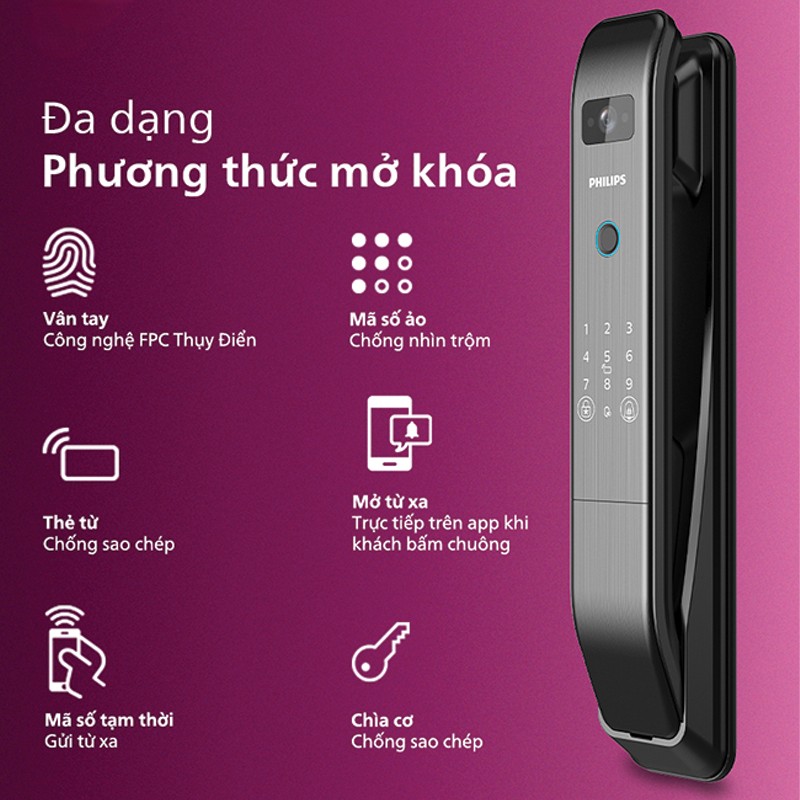 - Tính năng (vân tay, thẻ từ, app, face ID…)