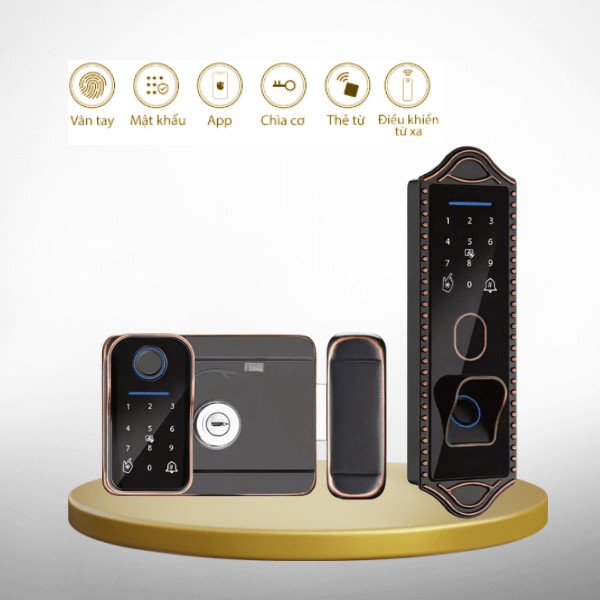 • Hỗ trợ vân tay, mật mã, thẻ từ, app Bluetooth, chìa cơ chống sao chép
