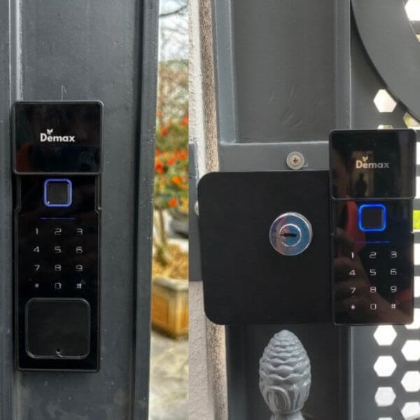Thiết kế cho cửa cổng 2 chiều: vân tay FPC quét nhanh ~0,5s ở cả hai mặt, chống nước ổn định, vỏ hợp kim kẽm phủ sơn tĩnh điện chống gỉ; mở bằng vân tay, mã số, thẻ, chìa cơ và app TTLock. Bộ nhớ lớn (100 vân tay/thẻ/mã), có cảnh báo đột nhập và mã ảo; phù hợp nhu cầu lắp đặt nhanh – quản trị đơn giản cho người tìm khóa vân tay dành cho cửa sắt bền bỉ, giá hợp lý.