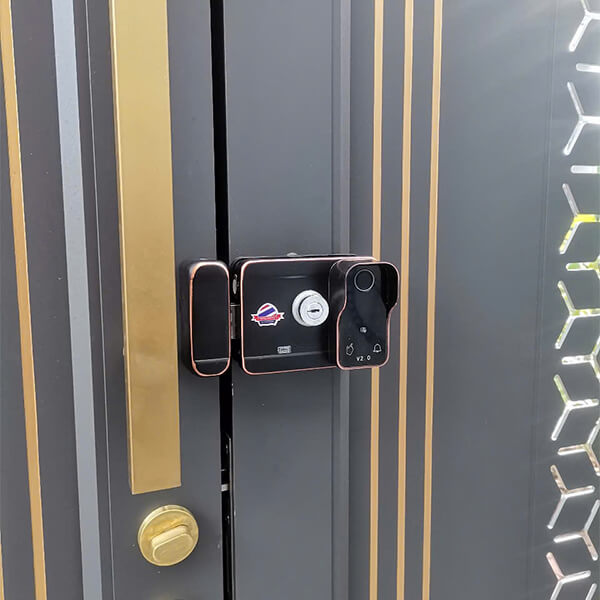 Dành riêng cho cửa cổng sắt: khung hợp kim nhôm đúc nguyên khối phay CNC, kính cường lực chống xước, thân thép SUS304; IP56 chống nước bụi. Hỗ trợ vân tay, mã số, thẻ từ, chìa cơ, App Tuya, remote và NFC; có tự khóa, cảnh báo cạy phá, vô hiệu thẻ mất. Tổng thể đúng nghĩa khóa vân tay cửa sắt ngoài trời cho cổng cao cấp cần độ cứng và độ bền cơ học.